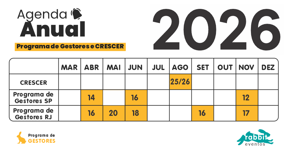 O Programa de Gestores segue o conteúdo programático adequado à sazonalidade e às necessidades do mercado educacional, seguindo o planejamento estratégico anual proposto pela consultoria Rabbit Partnership.
